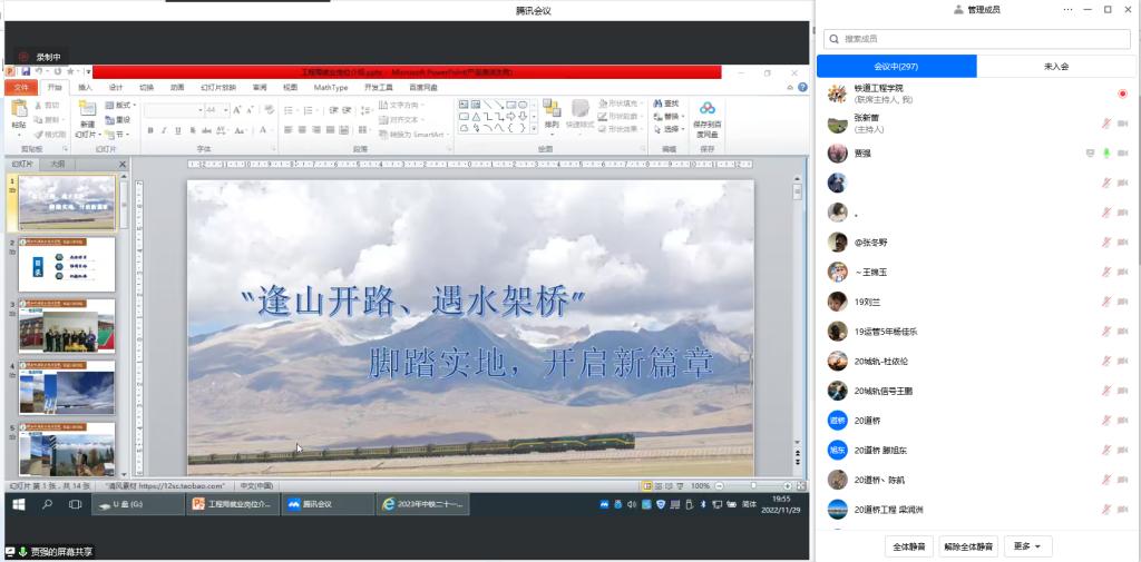 公司于11月29日晚,针对2022年秋季中国铁路局社招要求,举行了中国铁路局专场就业指导会。公司党支部书记、经理贾九荣、副经理卢彦峰全程参加了本次会议,公司600多名师生参加了就业指导会。会议由教学与管理办公室主任张新蕾主持。会议通过腾讯会议方式举行。