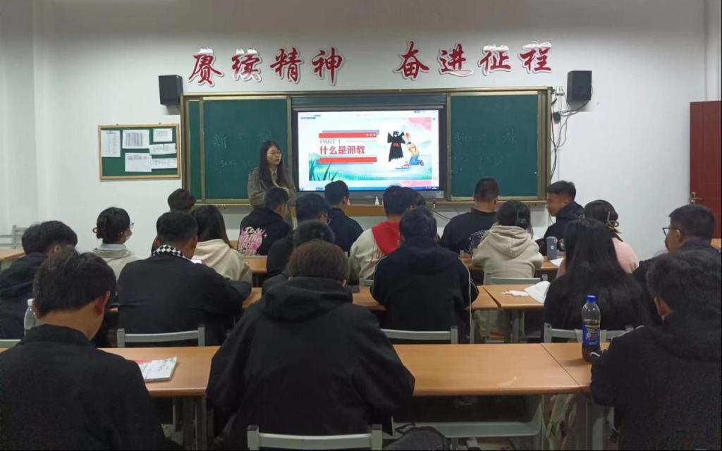 班会上,各班辅导员老师通过图片、视频等方式,给同学们讲解了邪教的本质及危害性,和同学们探讨了反邪教的重要意义。
