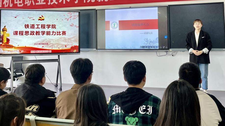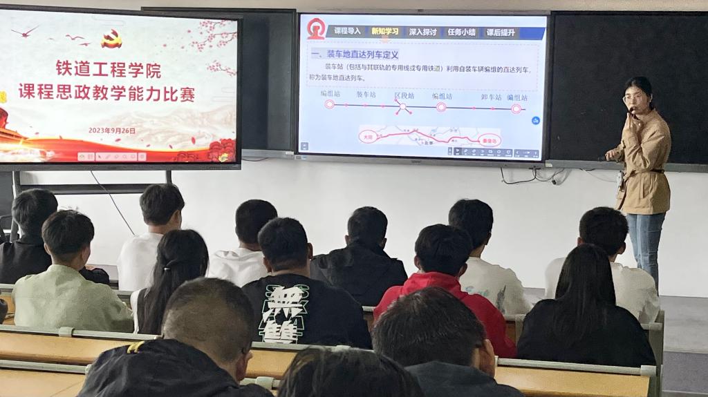 经过建筑系、信号系、铁道系的精心组织,广泛动员,共7名教师展开现场教学比赛。参赛教师结合自己的课程特色,深入挖掘各门课程蕴含的思政元素育人功能,在15分钟的说课和讲课时间内,既讲解专业知识,又启迪员工做人做事的人生道理,把思想政治教育的内涵潜移默化融入到课堂教学中,生动体现了知识传授和课堂讲授的统一性,展现了各具特色的教学设计和教学风采。