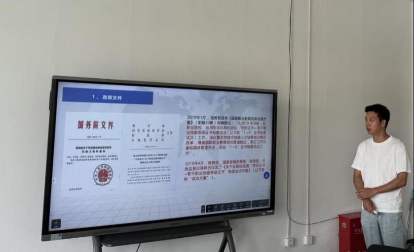 符惠萍、柳敏瑞老师汇报了工程造价专业教师教学能力提升项目的学习情况,分享了参与培训的学习经验与心得。史明洋、罗旺老师汇报了“1+X建筑工程施工工艺实施与管理证书团队培训”的学习情况,分享了参与培训的学习经验与心得。