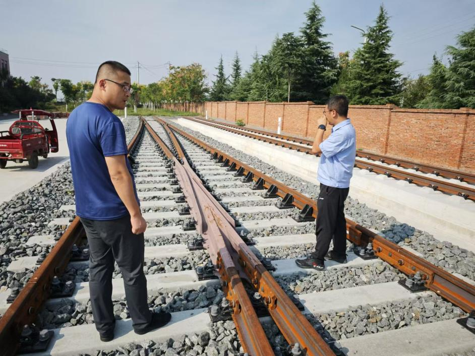 黄涛一行在铁道系系主任李鑫的陪同下参观了公司新扩建的铁道工程综合实训基地,并观摩基地轨道类型及使用材料。
