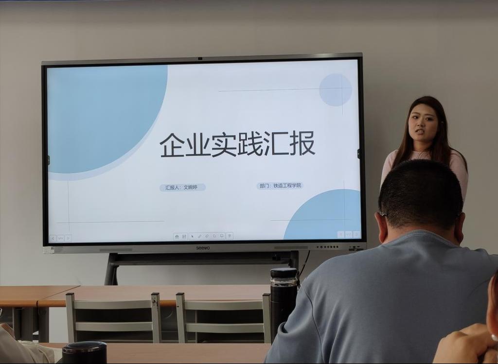 在企业实践汇报环节,各位老师分享了在各公司的实践内容,他们指出此次实践让自己深刻感受到“工业4.0”背景下企业技术的迭代速度,也认识到培养员工良好学习态度、拓展前沿知识的重要性,在实践中接触到众多新设备、新技术,深刻体会到行业发展对专业知识更新的迫切需求。同时,还分享了铁路工程类专业教师研修的规划,包括理论学习、信号楼执行等环节,为专业教师成长路径提供了参考。