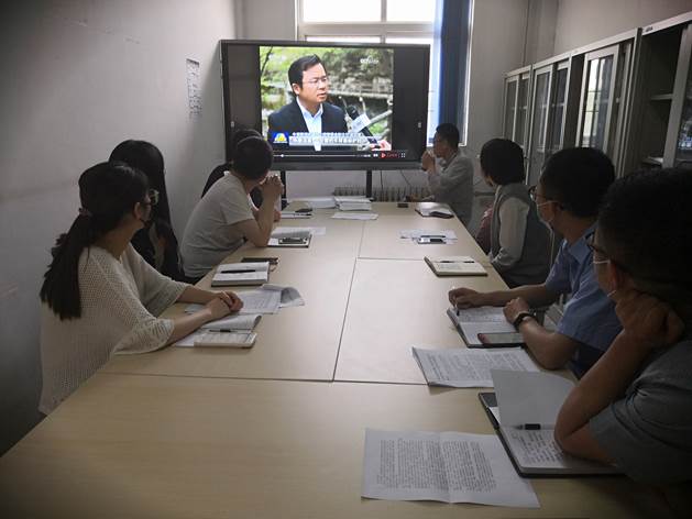 会议上,观看了习近平总书记在交大考察时的新闻报道。交大西迁博物馆坐落于西安交通大学兴庆校区。上世纪50年代,一批交大人响应党的号召,“打起背包就出发”,从上海迁至西安。博物馆二层和三层展厅,分别呈现了交大西迁的创业历程和辉煌成就。习近平仔细端详一张张照片、一件件实物。在一层大厅,习近平亲切会见14位西迁老教授,祝愿他们身体安康、家庭幸福。习近平指出,“西迁精神”的核心是爱国主义,精髓是听党指挥跟党走,与党和国家、与民族和人民同呼吸、共命运,具有深刻现实意义和历史意义。要坚持党对高校工作的全面领导,坚持立德树人,建设高素质教师队伍,努力培养更多一流人才。习近平勉励广大师生大力弘扬“西迁精神”,抓住新时代新机遇,到祖国最需要的地方建功立业,在新征程上创造属于我们这代人的历史功绩。