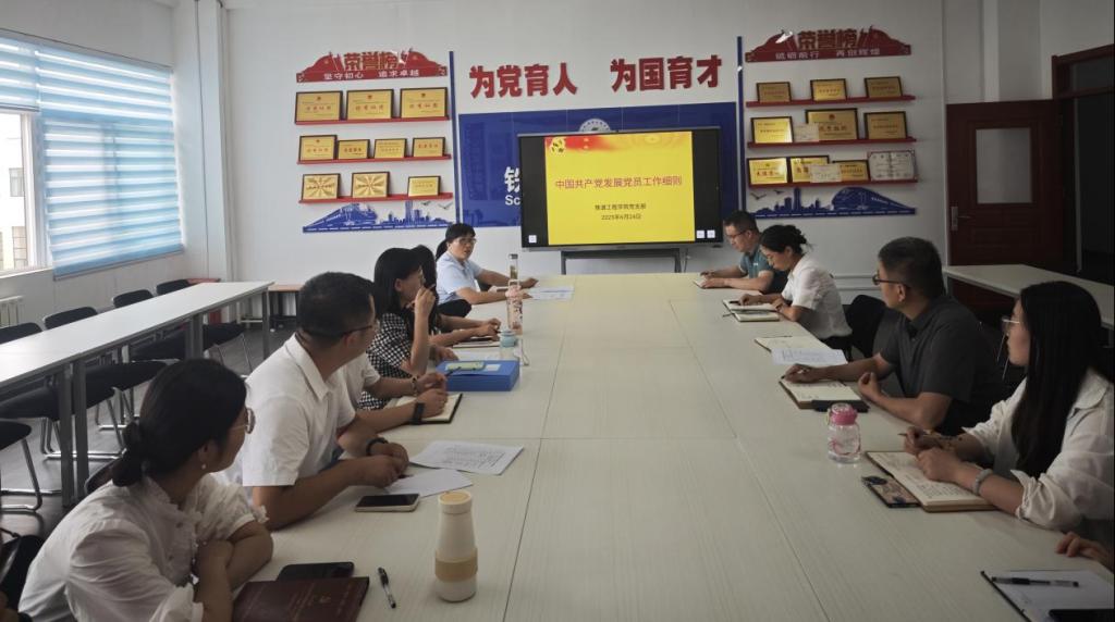接着,支部副书记张新蕾讲授了专题党课《中国共产党发展党员工作细则》,支部党员石晨晨讲解了关于发展党员过程中料填写的注意事项,提升了支部对发展党员工作的认识与业务能力,确保党员发展工作的规范性与严肃性。