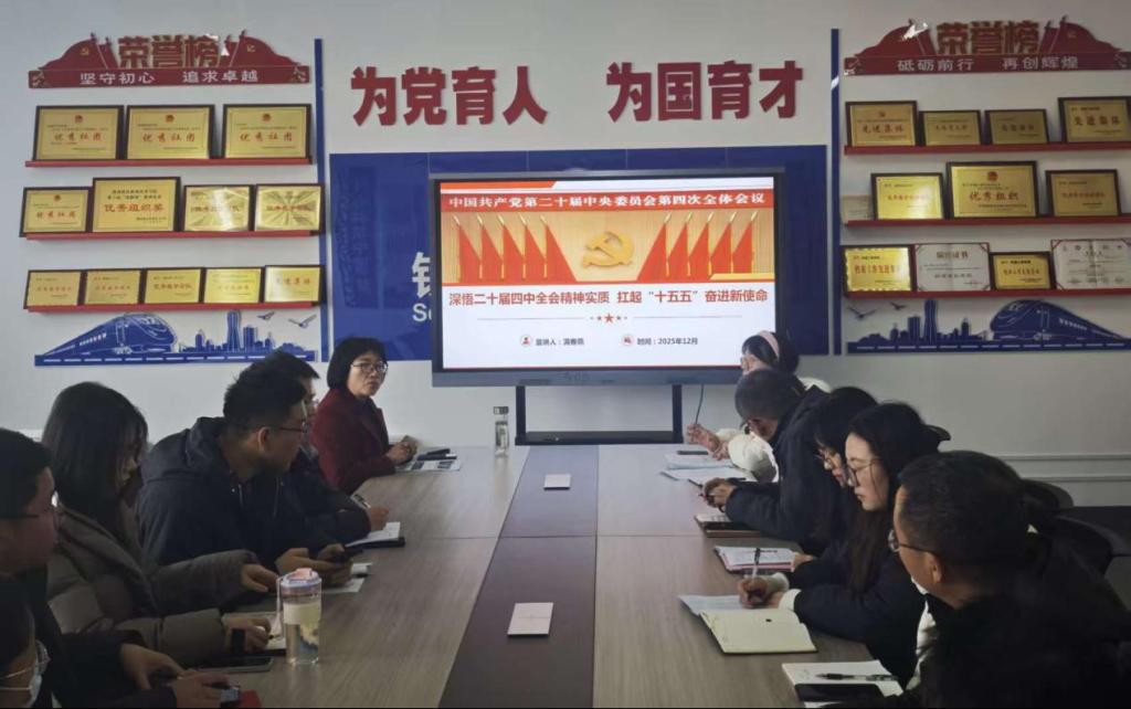 随后,支部书记满春燕“深悟二十届四中全会精神实质 扛起‘十五五’奋进新使命”为题讲授党课,强调二十届四中全会是“十四五”收官、“十五五”启幕关键节点的里程碑会议,其审议通过的“十五五”规划建议擘画了未来五年发展蓝图。围绕全会重大历史意义、“十五五”发展指导思想、核心目标(高质量发展、科技自立自强等)及战略部署展开解读,指出要紧扣全会“统筹教育科技人才建设”要求,将全会精神与教育事业发展深度融合,推动三者协同发力。