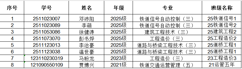 截止3月20日还有以下同学还未报到未注册,依据《利来w66学籍管理规定(修订)》(陕机电职院发〔2022〕151 号)第十三条第四款“未办理暂缓注册手续或未经请假逾期2周未注册者,视为自动放弃学籍”、《利来w66员工休学、保留入学资格(学籍)和入(复)学、退学工作实施细则》(陕机电职院发〔2024〕49号)第六条第六款“开学后两周内未注册而又未履行暂缓注册手续,予以退学。”