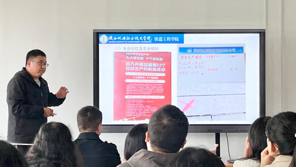 蔡俊清、贾强、齐海鹏、苟强、阎玉菡老师总结汇报了在宝麟铁路凤翔西站跟岗实践的基础理论知识、组织铁路行车工作过程、铁路线路维修施工学习等情况。