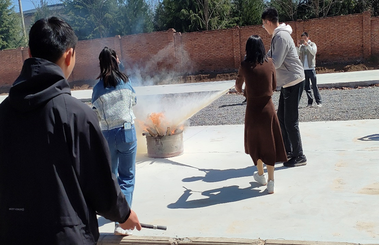 在师生安全撤离至操场后,为了让大家有效、正确地使用器材,保卫处王龙老师现场示范了灭火器的使用方法,师生们对消防器材来了一次“零距离接触”,在动手实践中掌握了灭火方法。