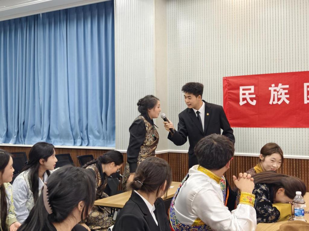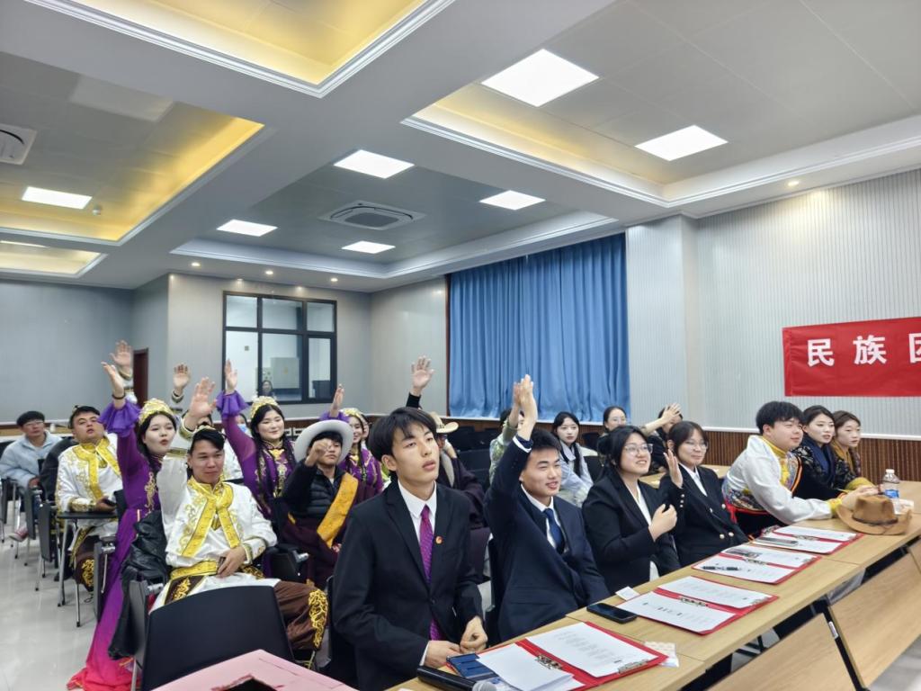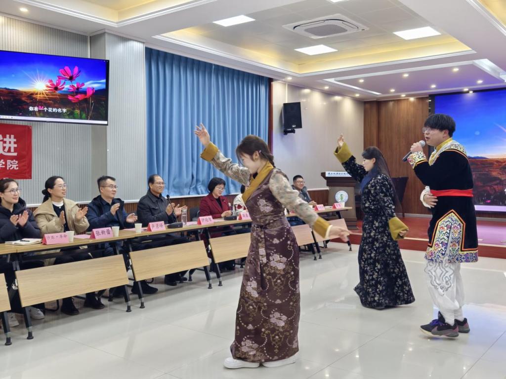 为丰富座谈会氛围,增进各民族员工间的文化交流,现场还开展了精彩的节目表演。歌伴舞《卓玛》旋律优美,舞者身姿灵动,展现出浓郁的民族风情;朗诵《到延安去》情感饱满、气势昂扬,传递出青年学子传承红色基因的坚定信念;藏舞表演中,舞者们身着特色民族服饰,动作舒展流畅,尽显藏族文化的独特魅力;新疆舞表演则热情奔放,欢快的节奏与优美的舞姿赢得了在场人员的阵阵掌声。一个个精彩的节目,不仅是各民族文化的生动展示,更是各民族学子团结友爱的鲜活体现。