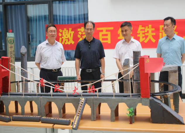 伊逊智等校领导先后参观了“铁路发展史”、“献礼党的二十大–追忆毛泽东号”、“廉政主题教育—贪腐酿成的特大铁路事故”、“中国高铁–亮丽的名片”等八个板块,认真听取讲解员介绍,饶有兴致地观看展出的手工火车、油画及文字等,不时停下脚步交流。