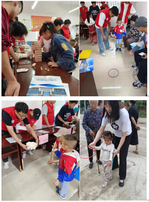 最后,实践团成员带领村里的小朋友们体验心理解压小游戏,乒乓球投掷、指压板跳绳、釜底抽薪、叠杯塔、套圈圈等游戏赢得了小朋友的一致好评,使得小朋友们在沟通与协作中提高团队信任感以及团体凝聚力。