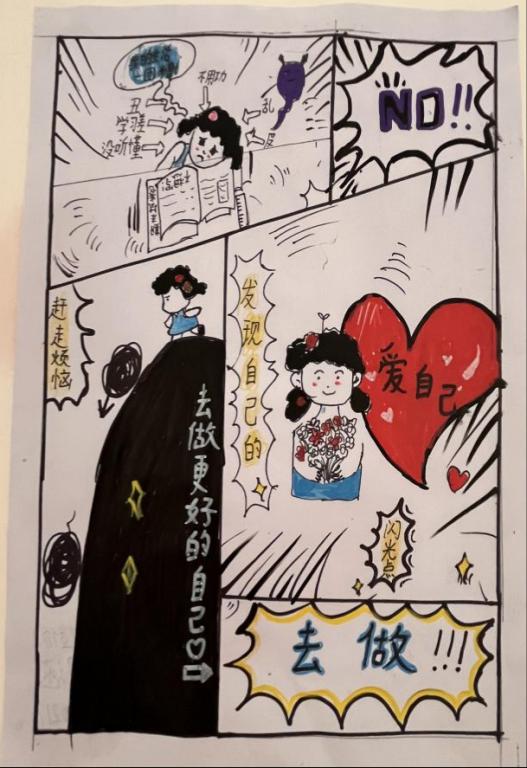 这些漫画作品包含单幅漫画、连环画等多种形式,作品将心理健康意识和心理健康水平以形象生动的艺术形式展示出来,反映了老员工对自我、对人际关系及对心理问题调适等的理解与感悟,同学们从漫画作品中体验到了心灵健康的美。
