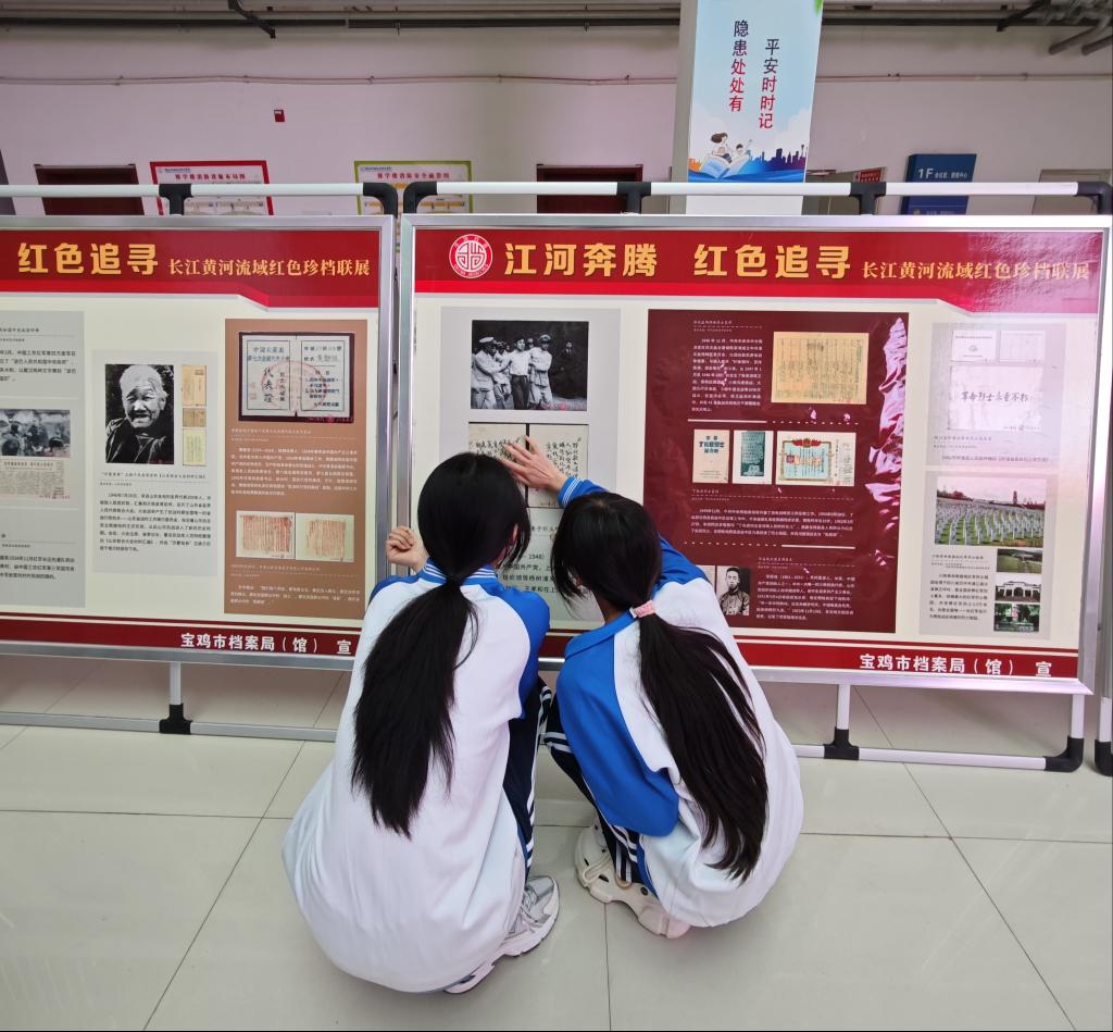 本次活动展出内容由利来w66和宝鸡市档案馆共同提供,精心挑选了一批具有代表性的档案资料,涵盖了政治、经济、军事、文化、社会、校史等多个领域。通过展板形式,向大家讲述档案中记录的红色历史、城市变迁和人文故事。员工时而驻足凝视展板上泛黄的文件、珍贵的照片,时而微微俯身,凑近仔细阅读文字说明;有的同学拿出手机,认真拍摄下展板内容,偶尔低声交流,与往昔岁月对话,从这些珍贵档案中汲取智慧与力量。