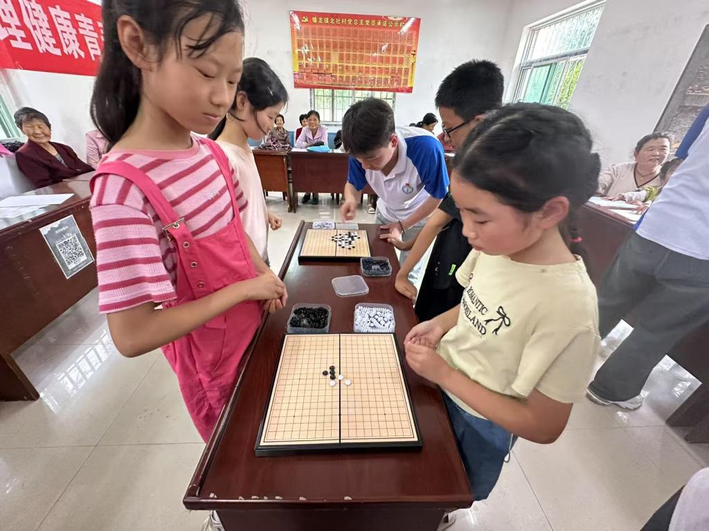 在村里的儿童活动中心,实践团队与孩子们展开了一场别开生面的心理健康游戏互动。队员们组织了五子棋比赛、螃蟹赛跑、釜底抽薪、涂鸦画等一系列充满趣味与挑战的游戏。孩子们在游戏过程中热情高涨,欢声笑语回荡在整个活动场地。这些游戏不仅为孩子们带来了欢乐,更重要的是在游戏中培养了他们的团队协作能力、沟通能力以及面对困难时的应变能力,助力孩子们在游戏中提升心理健康素养,增强团队信任感与团体凝聚力。