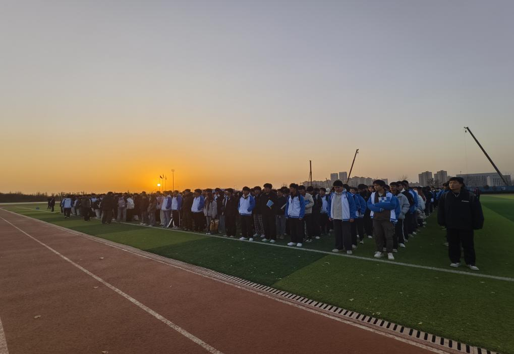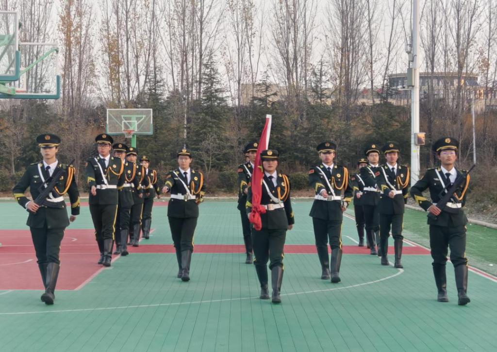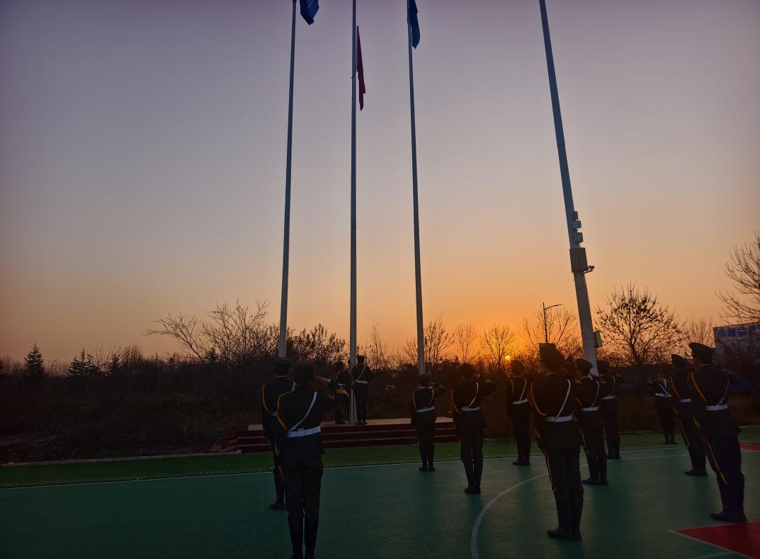 上午7时50分,伴随着庄严的乐曲,国旗护卫队踏着铿锵有力的步伐,将五星红旗庄严护送入场。当激昂的国歌奏响,鲜艳的国旗迎着晨光冉冉升起,全体师生肃立注目,齐声高唱国歌,以昂扬的姿态表达对祖国的无限热爱与崇高敬意。