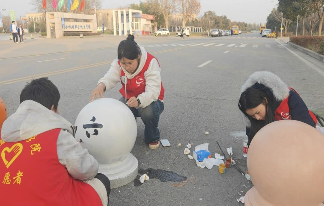 活动中,志愿者们以石墩为画卷,执笔绘彩、持刀刻画,将创意与热情倾注于一方方墩体之上。一幅幅生动活泼、色彩明快的图案陆续呈现,为校园环境增添了艺术气息与青春活力。课后途经的同学们纷纷驻足欣赏、拍照分享,在互动中感受到艺术带来的愉悦与感染力,实现了“美育赋能”与“情感共鸣”的双重效果。
