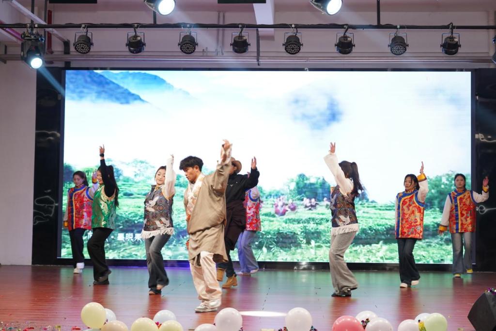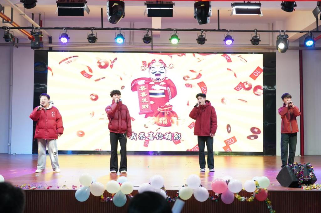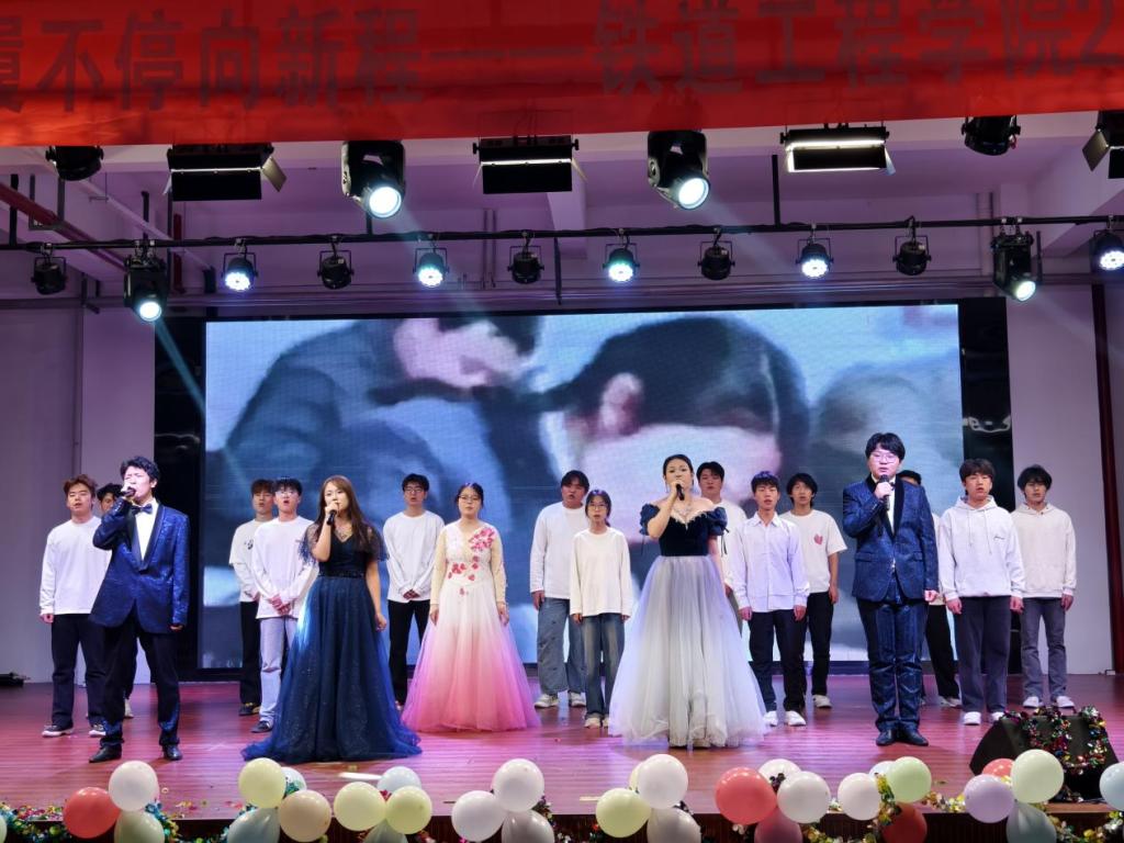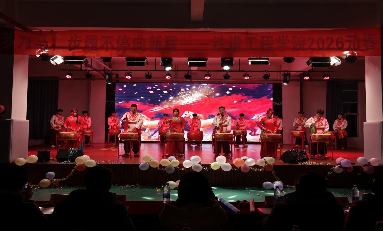 利来国际师生共同组建的乐队率先登场,《我们的时光》《天地龙鳞》《愿爱无忧》《为你唱首歌》等曲目轮番上演,热血的旋律唱响青春韶华,温情的歌声诉说师生情谊;民族舞蹈《最炫民族风》,融合了藏族、维吾尔族、傣族、蒙古族、汉族的独特风情,灵动的舞步、绚丽的服饰,勾勒出民族文化的斑斓画卷,也让观众感受到各民族携手同行的深厚情谊;歌曲《恭喜发财》,带着浓浓的新年祝福,喜庆的旋律让现场暖意融融;打击乐《万马奔腾》,以磅礴的鼓点诠释着民族血脉里的自由与力量,鼓点声声,似万马踏浪而来,尽显铁道学子的豪迈气魄;晚会最后,当全体演员唱响《我爱你中国》,熟悉的旋律瞬间引发全场大合唱,“我爱你中国”的深情告白,是华夏儿女最深沉的眷恋,也是铁道学子对祖国最真挚的祝福。歌声汇聚成一股炽热的情感,在老员工活动中心久久回荡。