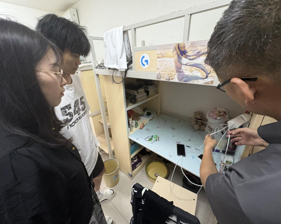此次检查围绕“安全生产月”安全隐患排查活动主题,重点对员工宿舍的用电安全、消防安全及财产安全等方面进行了全面细致的排查。满书记在检查中强调:“宿舍是员工学习生活的重要场所,安全工作必须常抓不懈。同学们要切实提高安全意识,养成'人走断电、人走锁门'的良好习惯,共同维护校园安全稳定。”