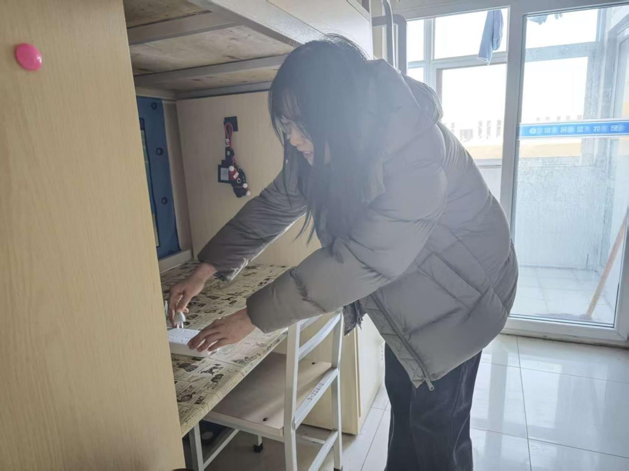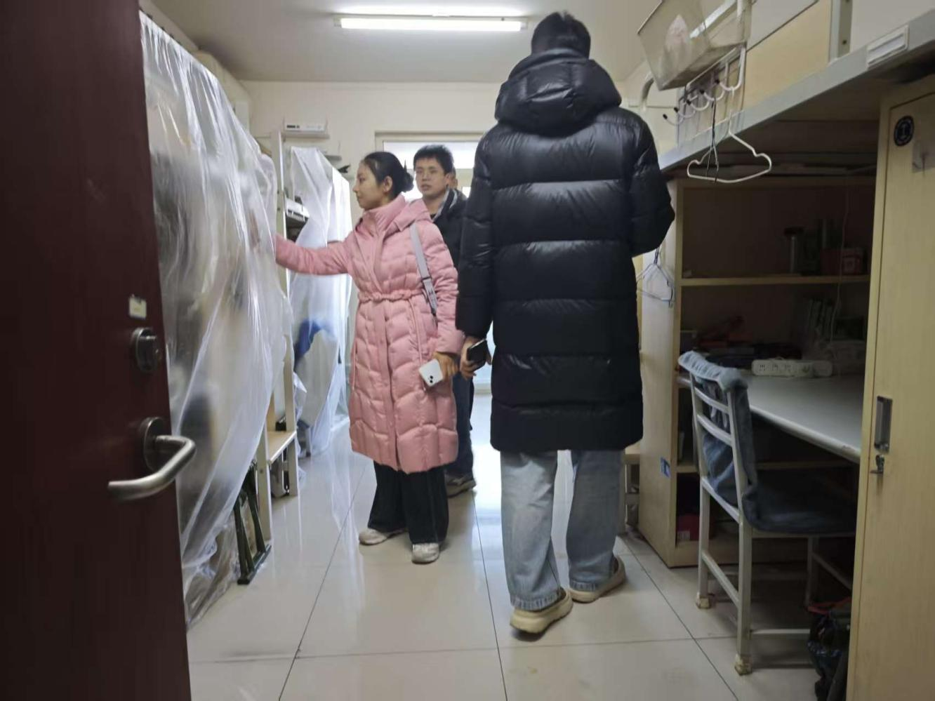 辅导员老师们对宿舍进行了细致的检查,详细查看了各类用电设备是否切断电源、门窗锁闭是否牢靠、贵重财物是否收好、生活用水是否关闭;同时,也对宿舍整体卫生状况进行了检查,包括地面是否清洁、垃圾是否及时清理、桌面物品是否摆放有序、是否存在杂物堆积现象;此外,还重点关注了水管、暖气、照明等基础设施的运行状态,检查是否存在漏水、结冰隐患或设备损坏情况。