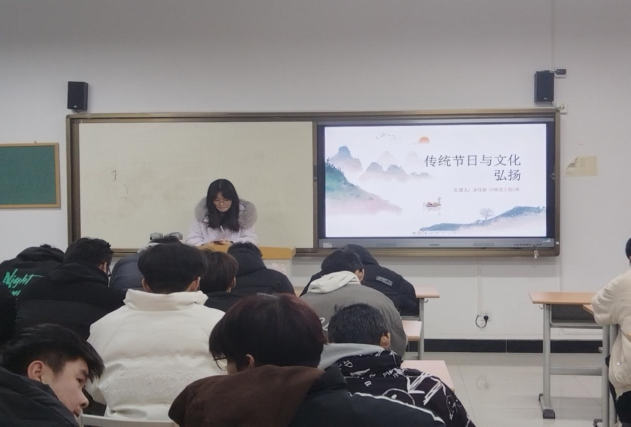 班会伊始,班主任/辅导员老师通过PPT 展示,向大家介绍了我国传统节日的丰富内涵和历史渊源。从春节的团圆喜庆到端午节的龙舟竞渡,从中秋节的赏月团圆到重阳节的敬老登高,每一个传统节日都承载着中华民族独特的文化记忆和价值观念。