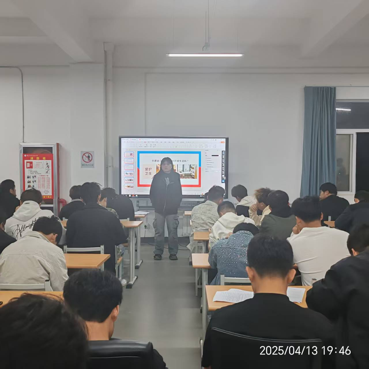 班会,各班班主任/辅导员老师通过播放校园火灾警示片、列举真实案例等方式,向同学们阐述了宿舍安全隐患的严重后果,重点强调了违规使用电器、私拉电线、存放违禁物品、抽烟等行为的危害性。随后,老师们详细解读了公司宿舍管理的各项规章制度,包括作息时间、检查标准、卫生标准、访客管理等方面,引导同学们自觉遵守规定。