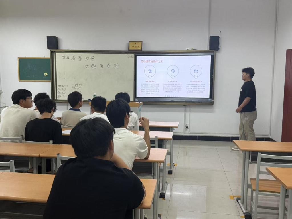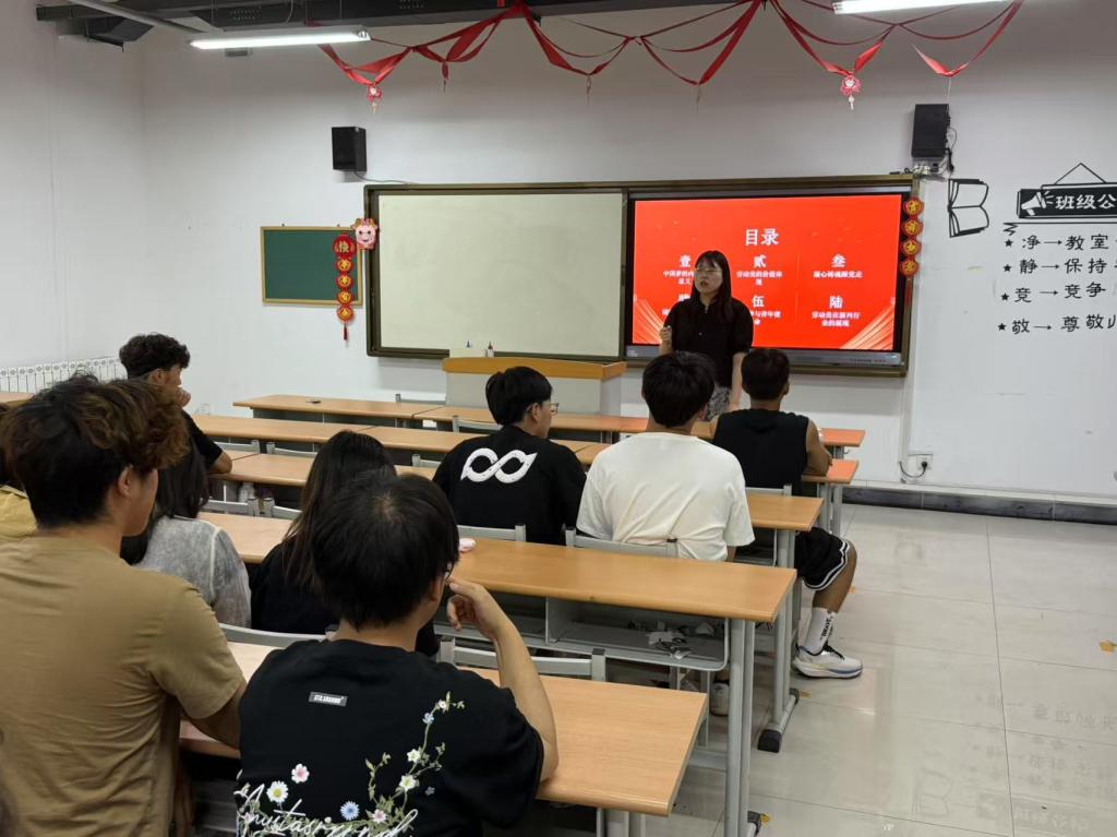 随后,班会通过播放精心制作的视频,展现了大国工匠、劳动模范在各自岗位上精益求精、默默奉献的故事。从攻克技术难题的科研工作者,到坚守基层的社区工作者;从为航天事业拼搏的航天人,到守护城市整洁的环卫工人……他们用实际行动诠释了劳动精神,同学们深受触动。