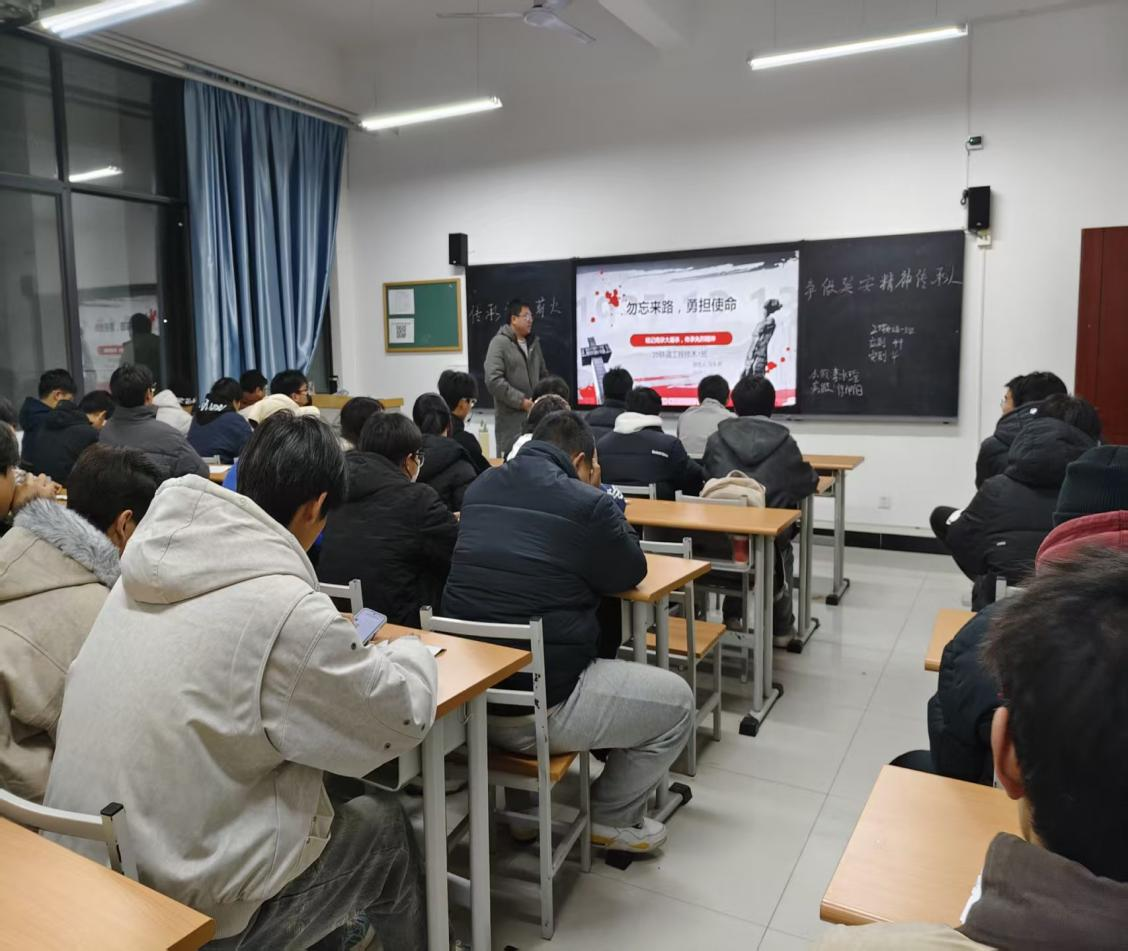 随后,班主任结合历史背景展开讲解,从南京大屠杀的历史事实,到中华民族在苦难中奋起抗争的历程,再到新时代青年的使命担当,层层深入地引导同学们思考“来路为何,使命为何”。在分享交流环节,同学们纷纷发言,有的讲述自己了解到的抗战英雄事迹,并表示既要铭记历史,更要将爱国之情转化为报国之行。
